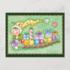 Ilustracion de la Vintage. Imagen de feriado de Navidad de Feliz Navidad con una oruga usando una corona, un arco y un punto de polka gorra de Santa Claus y cargando regalos en su espalda. La oruga alegre y sonriente parece un colorido tren ferroviario locomotor arco iris.