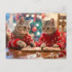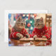 Postal Festiva Two cats in red sweaters with festive background