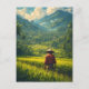 Esta impresionante pieza captura la belleza eterna de la vida indonesia. La obra de arte cuenta con un granjero en un gorra cónico tradicional, que supervisa sus terracitas de arroz meticulosamente hechas y enclavadas en un valle. Con su estilo suave y pintoresco, la imagen resalta la profunda conexión entre la gente y la tierra, ofreciendo un vistazo a un rico patrimonio cultural y una impresionante vista panorámica.