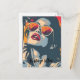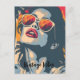 Una mujer segura de sí misma con un aspecto elegante y refinado, vestida con un traje de inspiración vintage. Sus gafas de sol de ojos de gato y su atrevido pintalabios rojos exudan glamour clásico. Tiene un estilizado peinado o perfectamente curvado, y su comportamiento agudo refleja la elegancia atemporal de la moda de mediados de siglo.