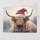 Merry & Bright Highland Cow en un festivo Santa que hace la postal perfecta para vacaciones de su familia y amigos. Guión blanco en el frente. Copia transparente si vaca en el lado inverso. A cualquiera le encantaría recibir esta dulce postal.