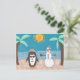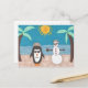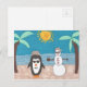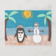 Un muñeco de nieve y un pingüino se van de vacaciones a la playa.