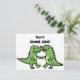 La tarjeta de saludo Dinosaur valentines incluye una pareja de dinos verdes enamorada de la frase 'Eres rawwr-some