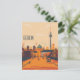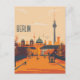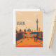 Esta postal de viaje muestra un ilustracion sereno y cálido que representa el paisaje urbano de Berlín con apartamentos históricos y rascacielos de la ciudad. Es una excelente postal para viajeros que planean visitar Berlín o para aquellos que viajan por Berlín y envían una postal a sus familiares o amigos.