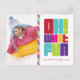 Un vibrante diseño de tarjeta postal con foto de Navidades con un acento diagonal rayado, un marcador de foto y las palabras "¡Oh! Qué divertido" audaz estilo retro moderno de tipografía.