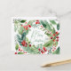 Prepárate para completar tus deseos más cálidos en el arte de la temporada con esta postal de Navidades de personalizable. La parte delantera cuenta con una corona de acuarela exuberante, donde las bayas holly vibrantes se desprenden de un suave tapiz de hojas verdes profundas y espinas delicadas. Esta frontera inspirada en la naturaleza enmarca un elegante y elegante guión de "Feliz Navidad" en un rico verde, invitando instantáneamente a los destinatarios al espíritu de las fiestas. La parte trasera mantiene esta estética refinada con un diseño limpio, moderno y de alto impacto. Se muestran de forma destacada los campos de personalizable de la dirección de retorno y el mensaje.