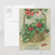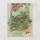 Este es un ilustracion vintage de postal de una canasta de Navidades llena de hueso.