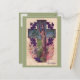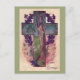 This old-fashioned Easter postcard shows a tree within a cross surrounded by violets, lilies, and the words "Easter Greetings."