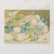 Adorables perchas de paloma vintage en lo alto de una encantadora caja de dulces de huevos y flores, envueltas con una preciosa proa verde.