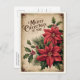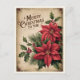 Postal Festiva Vintage Merry Christmas Red Poinsettia