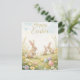 Un saludo de Pascua de inspiración vintage con suaves tonos pastel, un conejito adorable y huevos decorados. Un diseño atemporal para las celebraciones de Pascua.