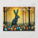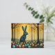 Un conejito con huevos en el bosque feliz postal personalizado de Pascua.