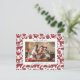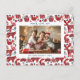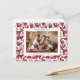 Spread joy and warmth this holiday season with this whimsical family photo Christmas postcard featuring a vibrant red and blue Scandinavian-inspired border of reindeer and other forest animals on a white background. The charming folk art pattern adds a playful touch to your family photo, capturing the cozy magic of Christmas traditions.