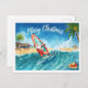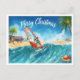 Postal Festiva Windsurfing Santa Beach Christmas Card