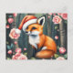 Postal Festiva Woodland fox in Christmas hat holiday postcard