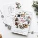 Un diseño festivo de tarjetas de vacaciones que incluye ocho de tus fotos favoritas dispuestas en un diseño de corona circular acentuado por el follaje color agua verde, los conos de pino y las bayas rojas en un fondo de shiplap de madera de una casa de campo blanca. "Alegría" aparece en el centro en la tipografía festiva de escritura de pincel con letras rojas. Personalice este diseño único de collage de fotos de vacaciones con los nombres y saludos de sus Navidades personalizados en la parte inferior, y agregue un mensaje preimpreso más largo en la parte posterior.