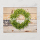 Postal Festiva Wreath de Pine en la madera | Saludos de temporada