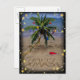 Palmeras, adornadas con adornos de navidad en una playa de arena. Palabras "Feliz Navidad" escritas en la arena. Más elementos con este diseño: www.zazzle.com/aura2000/tropical+xmas