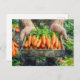 Cierre de zanahorias recién cosechadas con topes verdes colocadas en una caja rústica de madera. Un estilo fotográfico luminoso y natural perfecto para la agricultura y los mercados orgánicos.