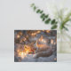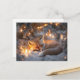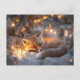 Experimente la magia del invierno con esta serena imagen de un zorro rojo durmiendo tranquilamente en la nieve, rodeado de brillantes luces de hadas y una linterna rústica bajo ramas de pino nevadas.