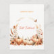 Festival de la Caída del ilustracion acuático. Escena de otoño, muy bien arreglada, con una variedad de calabazas, rodeadas de delicadas flores silvestres en tonos suaves de amarillo y rosa. La composición incluye pastos delgados y acentos de hoja, creando un marco natural armonioso. Encima, una suave mariposa coquetea con gracia, añadiendo un toque de brillo al diseño sereno.