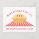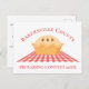 Personalizar esta tarjeta postal del concurso de pastelería para su festival de ferias o productos horneados de tu condado. Una bonita manta de picnic de gingham roja se sienta bajo su pastel de postre recién horneado.