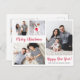 Caligrafía elegante Minimalista de presupuesto, tarjetas postales de Navidades múltiples en blanco y rojo. Esta festiva y simple plantilla de 5 (5) tarjetas de festividad fotográfica incluye un collage de fotos de bonito (en la foto delantera y trasera 1 foto), una "Feliz Navidad" y "Felices Fiestas", que los textos de saludo están escritos en un hermoso tipo de letra de guión en negrita con letras a mano. Al revés, una plantilla de mensajes personalizado prefabricada. Tarjeta postal de bienvenida para su familia y amigos en temporada de vacaciones para Navidades. Postales baratas de vacaciones.