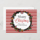 Postal Festividad de las franjas rojas Holly Wreath Feliz