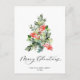 Watercolor Holly Berry Christmas Tree Greeting Postcard.