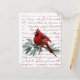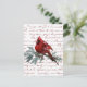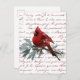 Postal Festividad navidad Cardenal rojo pájaro escritura