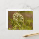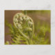 Foto macro de un helecho de cabeza de campo que se despliega en forma de corazón.
