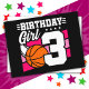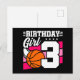 Postal Fiesta de Baloncesto de 3 Años Cumpleaños Niña de