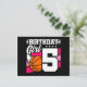Postal Fiesta de Baloncesto de 5 Años Cumpleaños 5º Niña