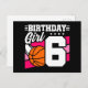 Postal Fiesta de Baloncesto de 6 Años Cumpleaños de Niña