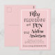 Una invitación a una fiesta de cumpleaños 50 moderna y fabulosa de color rosa. Una invitación divertida, caprichosa y extravagante para el cumpleaños cincuenta, con texto negro juguetón, diseñada para mujeres que cumplen 50 años, que son jóvenes de corazón y todavía les encanta divertirse. ¡Diviértete personalizando el nombre, fecha y hora, ubicación y RSVP con la herramienta de edición.