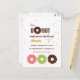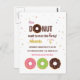 Invitación personalizable para fiesta de cumpleaños infantil con donuts con influencia rosa y dorada según los detalles de su evento.