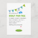 Invitación simple en blanco y negro para una fiesta de cumpleaños con tema de golf. Crédito a Graphics Factory.
