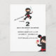 Invitación de cumpleaños de ninja con un esquema de color simple en blanco y negro personalizable según los detalles de su evento.