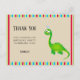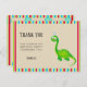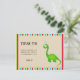 Este texto de tarjeta postal de agradecimiento para fiesta de cumpleaños de dinosaurio es totalmente personalizable.