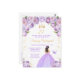 Esta elegante y glamurosa invitación de cumpleaños presenta a una hermosa princesa con cabello castaño en un vestido de baile de color púrpura claro. El texto combina la escritura a mano y las fuentes modernas sans serif para un aspecto clásico y sofisticado. Los arreglos florales, la mariposa y el confeti dorado crean la mezcla perfecta de rústico y chic.