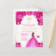 Esta elegante y glamurosa invitación de cumpleaños presenta a una hermosa princesa con cabello marrón en un vestido de baile rosa caliente. El texto combina la escritura a mano y las fuentes modernas sans serif para un aspecto clásico y sofisticado. Los arreglos florales, la mariposa y el confeti dorado crean la combinación perfecta de rústico y chic. Gráficos por www.etsy.com/uk/shop/SunflowerDayLove