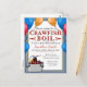 Esta invitación para hervir cangrejos de río azul y dorado es personalizable para tu evento especial. Con una imagen de fondo azul verdoso con perlas doradas y cangrejos de río, este diseño es perfecto para tu cumpleaños, fiesta de compromiso, graduación o cualquier evento que estés organizando. El cangrejo de río ilustrado con estilo de dibujo animado junto con globos en la parte frontal añade un toque divertido a las fuentes serif y manuscritas. La palabra "cangrejo de río" también es personalizable a cualquier "hervido" que puedas tener, incluyendo mariscos, langosta, cangrejo, etc.