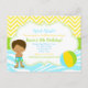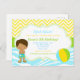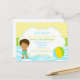 Una Invitación de Fiesta de Cumpleaños de Niño Afroamericano en la Piscina. Las palabras se pueden cambiar para adaptarse a sus propias necesidades.