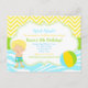 Una Invitación de Fiesta de Cumpleaños de Niño de Pelo Rubio en la Piscina. Las palabras se pueden cambiar para adaptarse a sus propias necesidades.