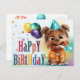 Terrier Adorable con Sombrero de Fiesta y Cuerno, Celebra un Cumpleaños.