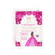 Esta elegante y glamurosa invitación de cumpleaños presenta a una hermosa princesa con cabello castaño en un vestido de baile rosa intenso. El texto combina la escritura a mano y las fuentes modernas sans serif para un aspecto clásico y sofisticado. Los arreglos florales, la mariposa y el confeti dorado crean la mezcla perfecta de rústico y chic.