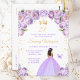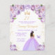Esta elegante y glamurosa invitación de cumpleaños presenta a una hermosa princesa con piel oscura en un vestido de baile de color púrpura claro. El texto combina la escritura a mano y las fuentes modernas sans serif para un aspecto clásico y sofisticado. Los arreglos florales, la mariposa y el confeti dorado crean la mezcla perfecta de rústico y chic.