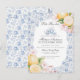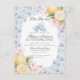 ¡Es hora de Par-tea! Eleva tu próxima fiesta de cumpleaños con este delicado ramo de flores chinoiserie azul claro. Este tema floral caprichoso está inspirado en el encanto de un jardín francés, con un patrón de toile pastel con limones frescos y flores rosadas suaves.