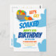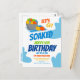 Batalla de globos de agua, vamos a empaparnos, patrón de tarjeta postal de invitación de cumpleaños para niños en la fiesta de verano en la piscina.