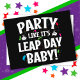 Un diseño divertido y único de cumpleaños del año bisiesto para un niño o niña que cumple años el día bisiesto afortunado de tener un cumpleaños el 29 de febrero del día bisiesto. ¡Celebra tu no cumpleaños este año no bisiesto y celebra como si fuera el día bisiesto, bebé! Características "¡Fiesta como si fuera el día bisiesto bebé!" meme divertido de cumpleaños del día bisiesto con una rana sonriente que lleva una corona en un gráfico de tema de fiesta de cumpleaños colorido. ¡Divertido para saltadores de todas las edades!